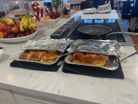 Our breakfast team went all out with an incredible spread, featuring Katie’s chocolate chip and cinnamon brioche French toast, Jess’s egg, cheese and sausage breakfast sliders, Carly’s potato and sausage hash browns topped with fried eggs, Steph’s six pounds of perfectly crispy bacon, and Sandy’s yogurt parfaits loaded with vanilla yogurt, fresh berries, granola, and chocolate chips.